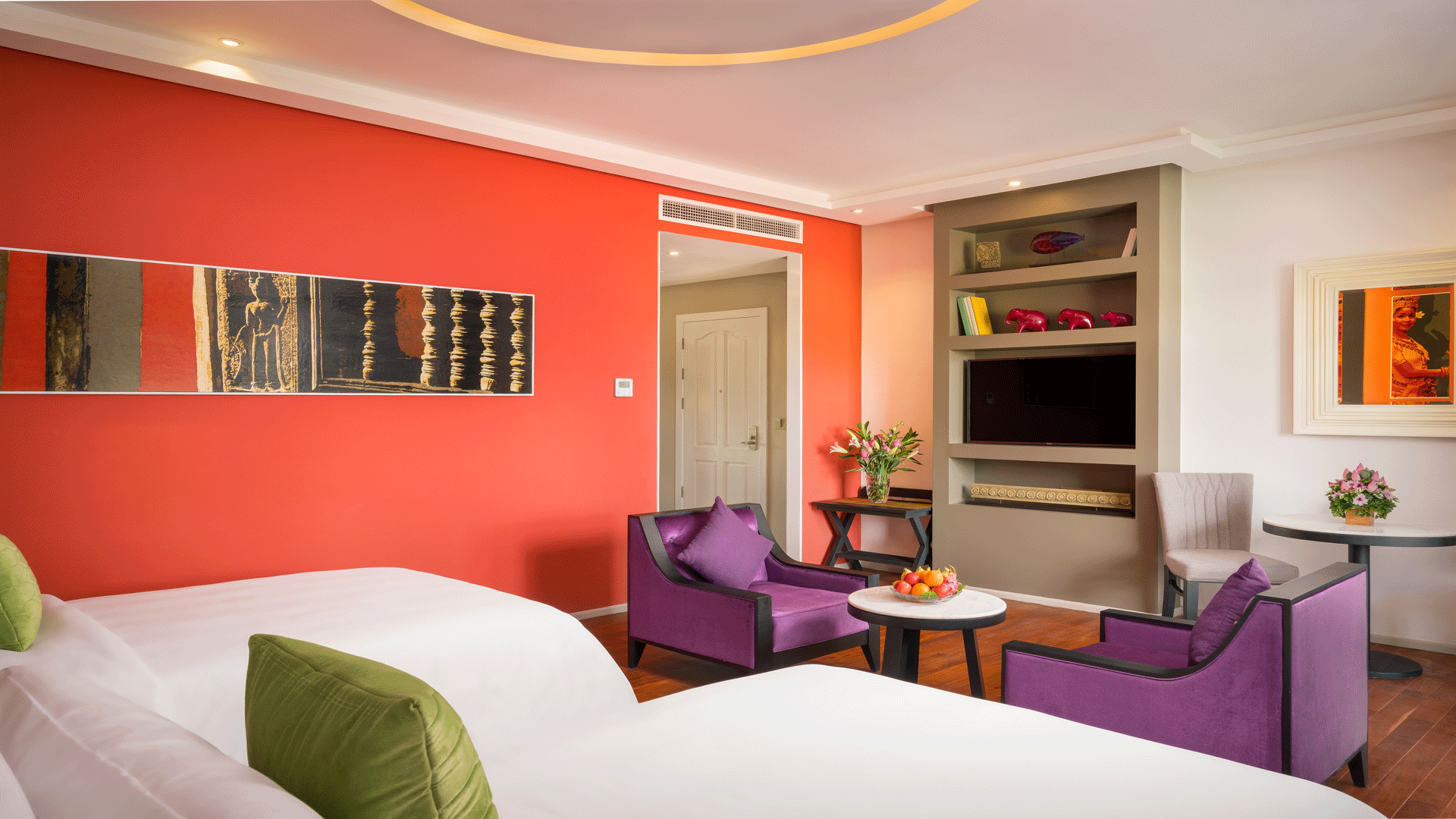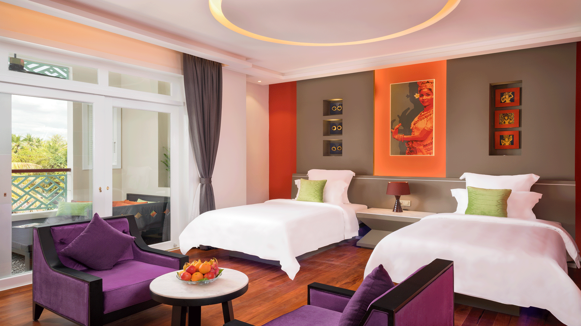 The warm, golden tones and rich fabrics create an atmosphere that is both uplifting and serene, making you feel connected to the vibrant spirit of the country. Whether you're seeking relaxation or inspiration, our Garden Suites offer a perfect blend of comfort and cultural immersion, inviting you to discover more of the vivid colors and traditions that make Cambodia so unique.