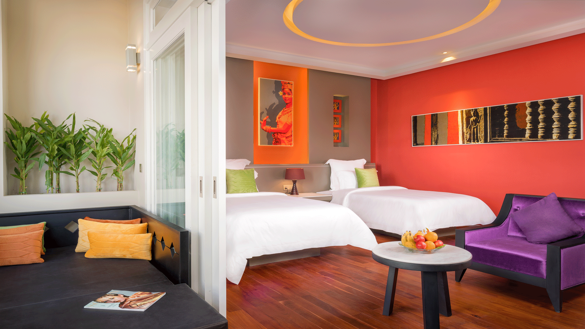 The interiors are a feast for the eyes, with colors that evoke the lively energy of traditional Apsara performances, bringing a touch of the divine into your personal sanctuary. As you relax in these thoughtfully designed spaces, you'll find yourself drawn to the vivid palette that mirrors the splendor of Cambodia's landscapes and cultural treasures.